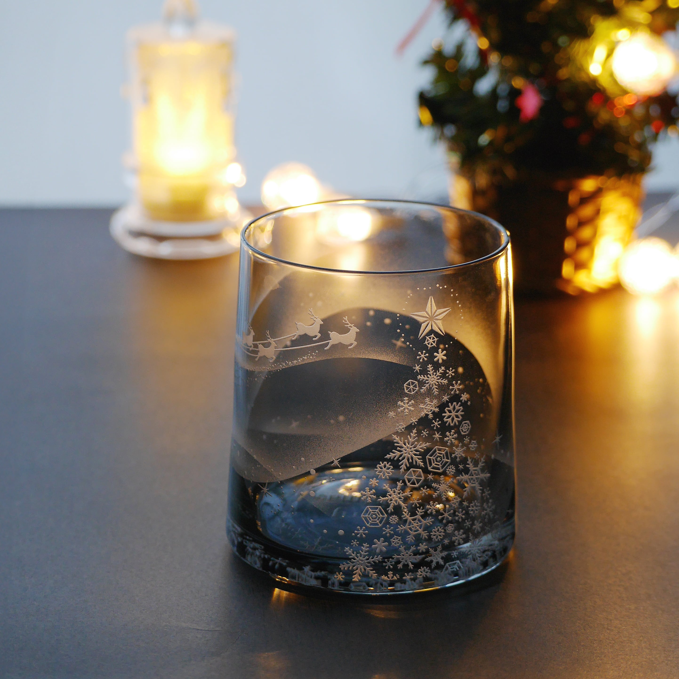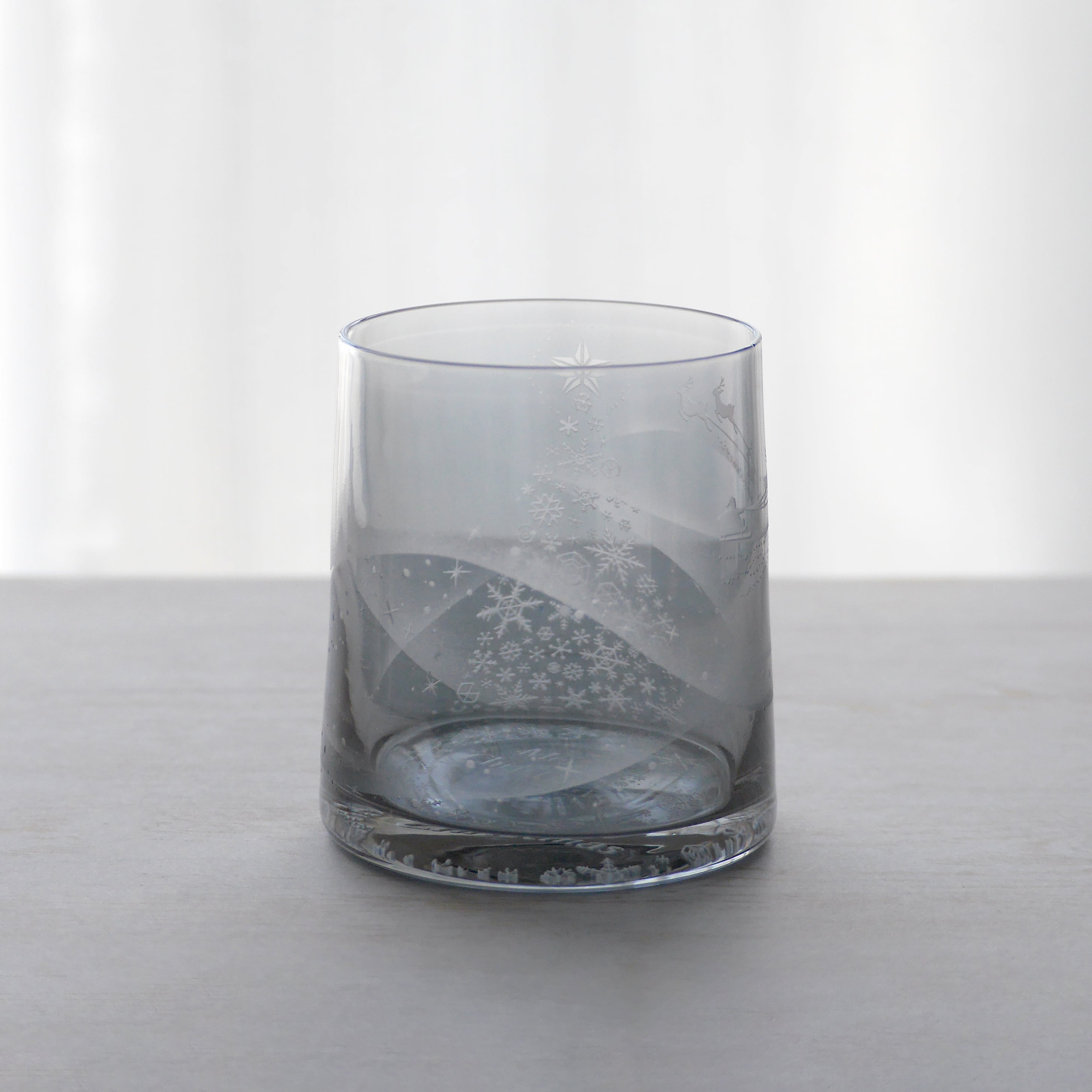 グレーの生地にツリーが映える、クリスマスをモチーフにしたグラスです。