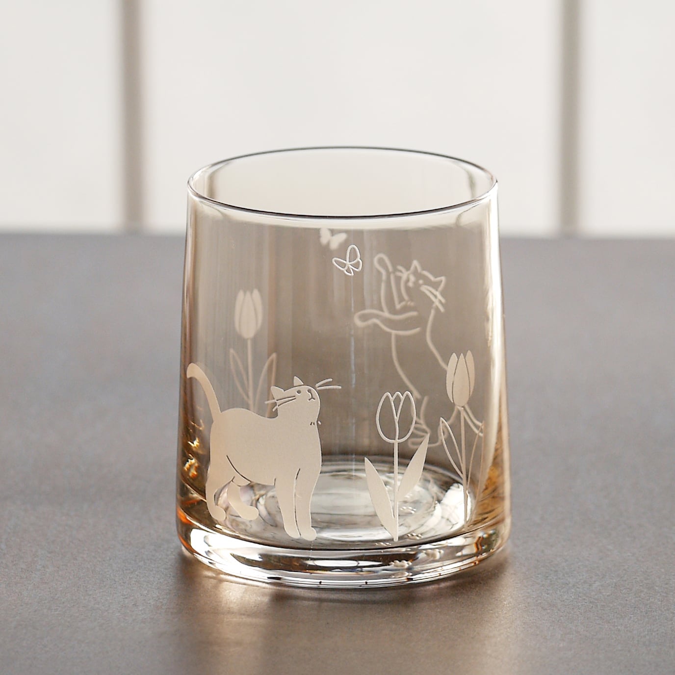 きらめきグラス 猫とチューリップ ブラウン