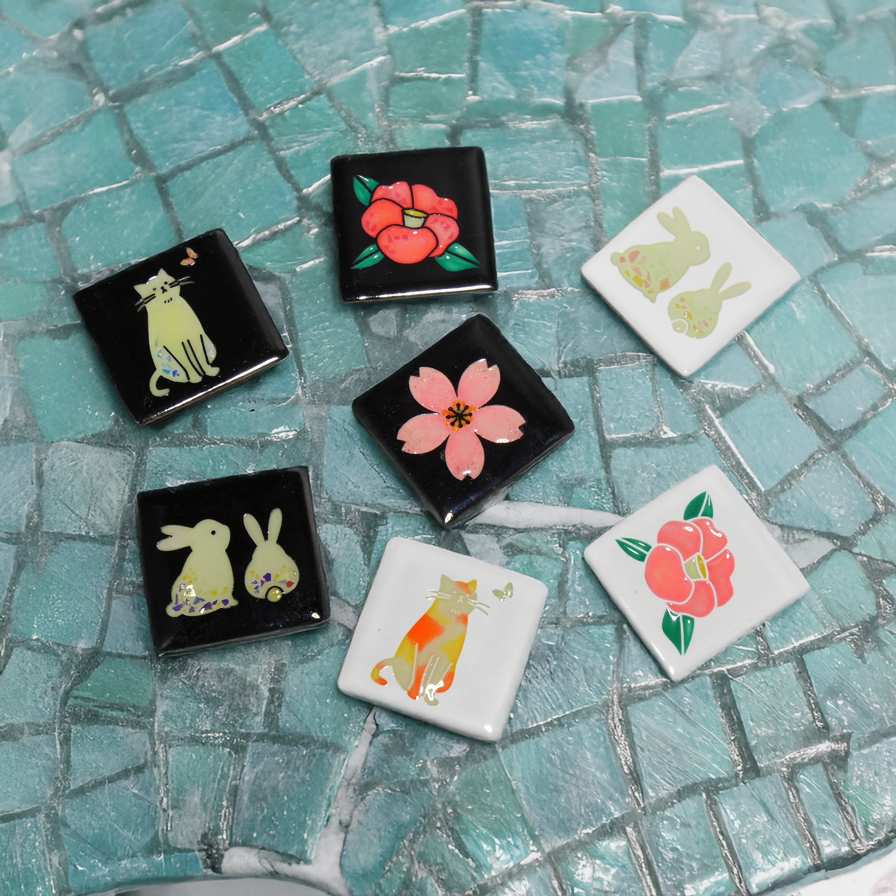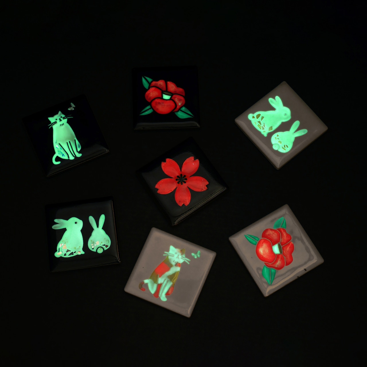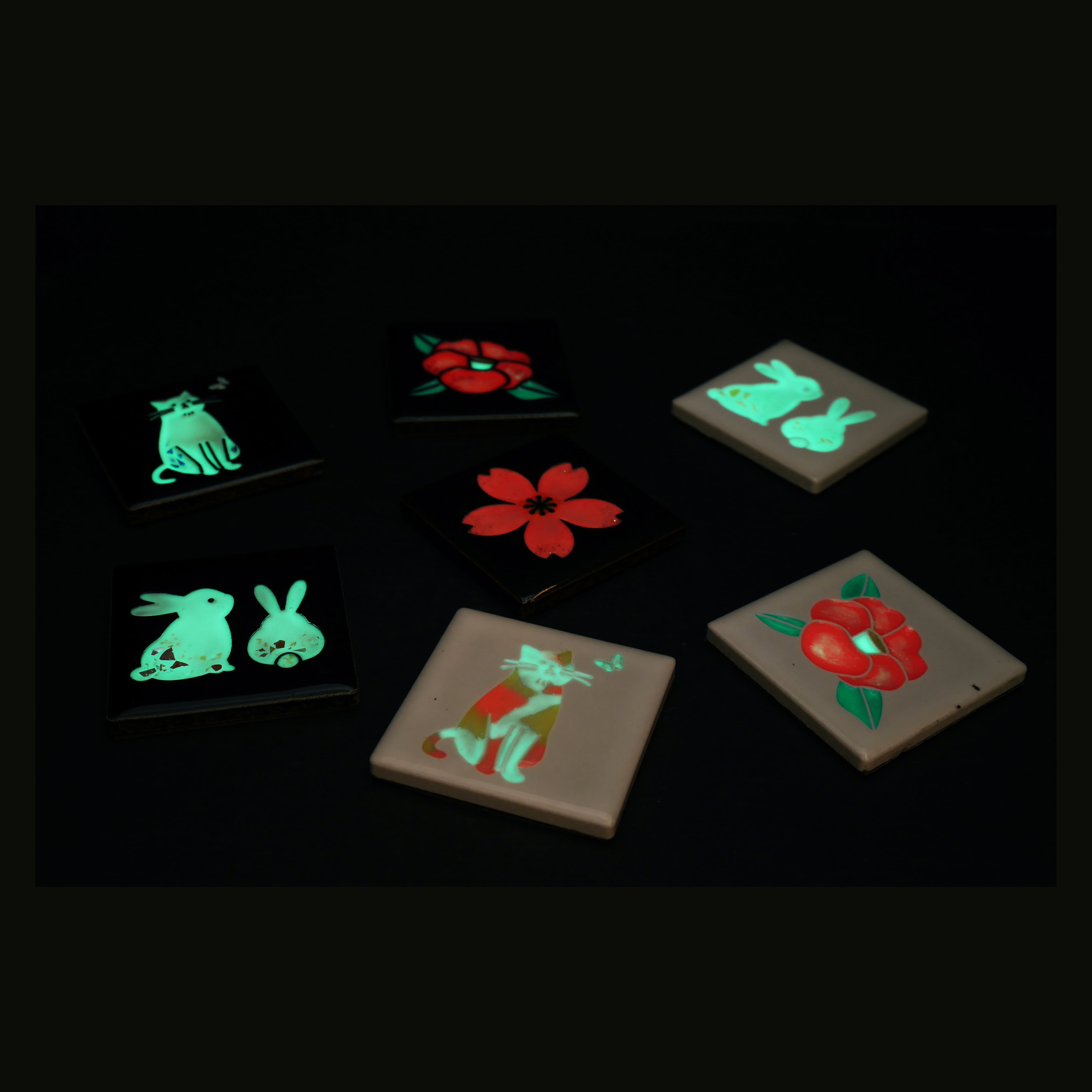 多治見市で製造されたタイルに蓄光加工を施し、可愛いマグネットに仕上げました。
